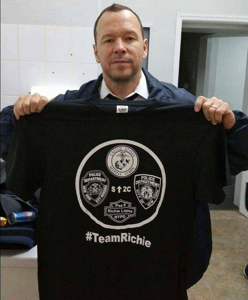 This fundraiser was even picked up by the cast of Blue Bloods and championed by the likes of actor Donnie Wahlberg who took photographs holding the shirt.