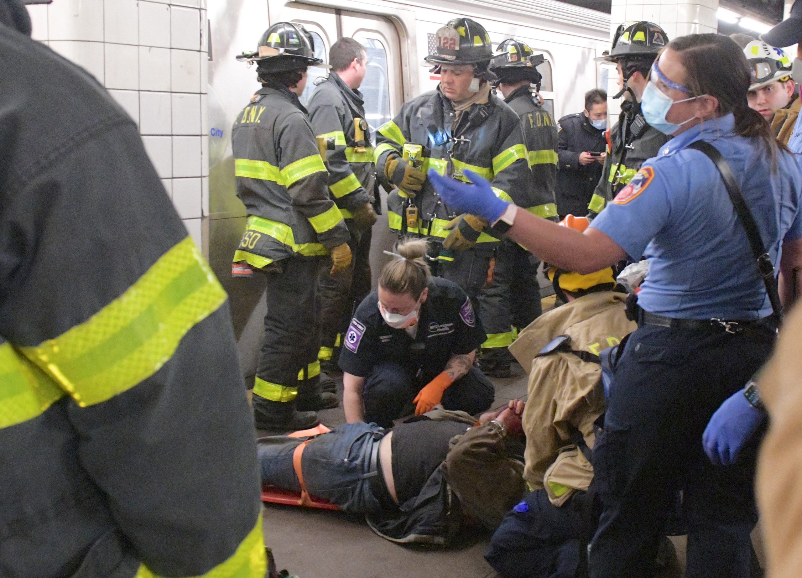 Firefighters rushed to the scene with transit police and found the man under the train. They ordered power turned off on the third rail so they could safely lift the man off the tracks and onto a gurney.