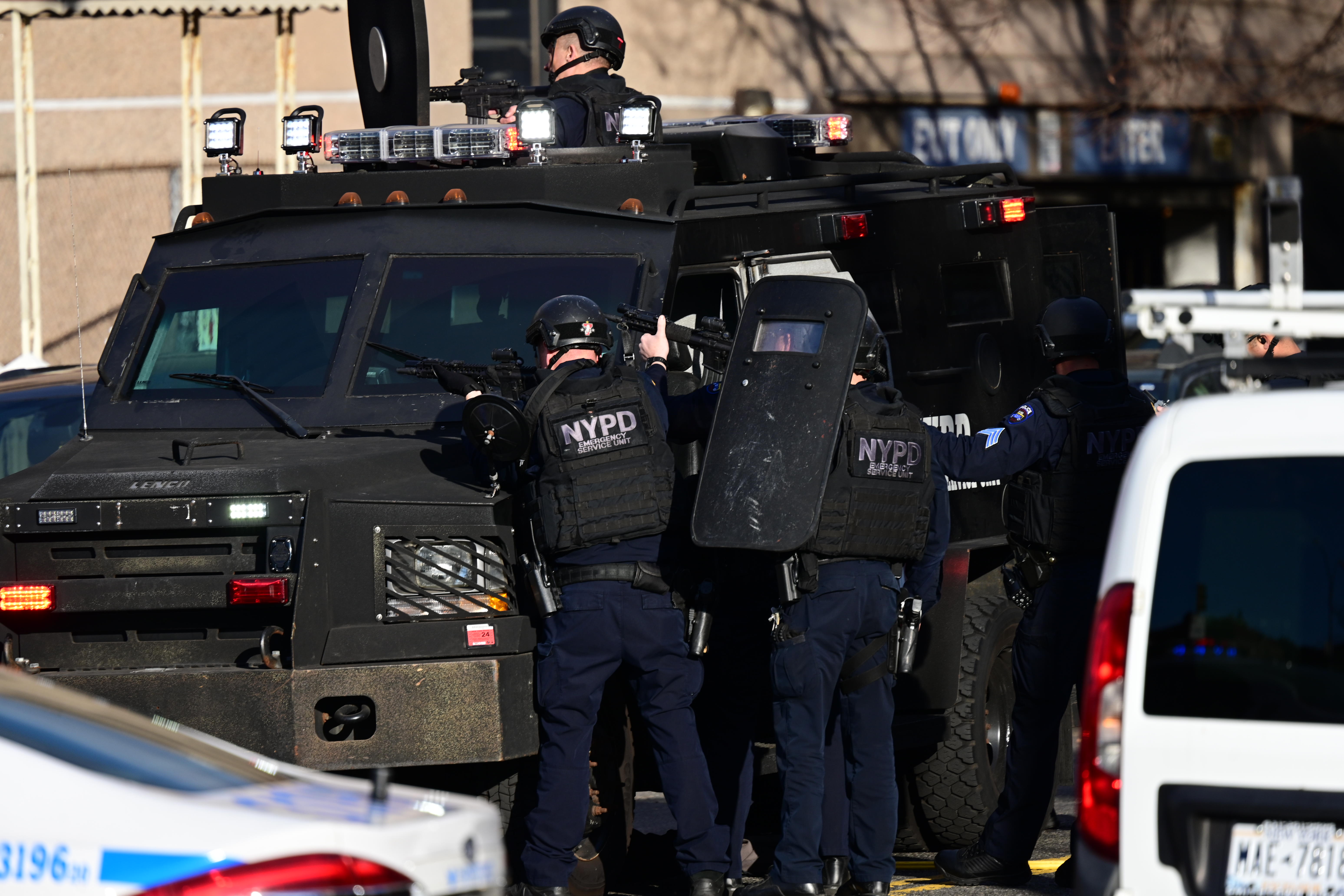 The officer reportedly suffered a facial wound and was pulled into a police RMP and was rushed to Brookdale Hospital, where he is expected to survive.