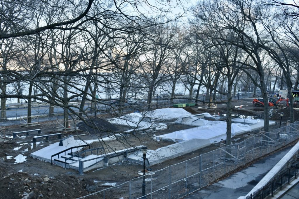 The park is still under construction and scheduled to reopen in May. It will feature new landscaping and design elements such as an elevated concrete plaza with staircase, a quarter-pipe for beginners, half-pipe and bowl for more advanced skaters.