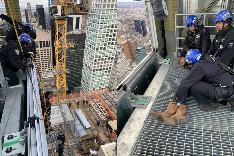 This morning @NYPDSpecialops Emergency Service Unit officers were called to rescue a distraught man from the 55th floor of a building in Manhattan. He was swinging a pipe at the cops stating he wanted to jump, but they persisted, putting themselves in harm’s way, & saved his life pic.twitter.com/D57BAuSqPU