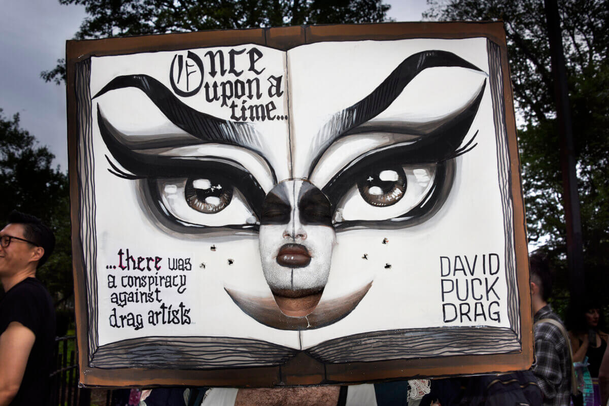 “Once upon a time,” reads David Puck’s open book costume, “there was a conspiracy against drag artists.”