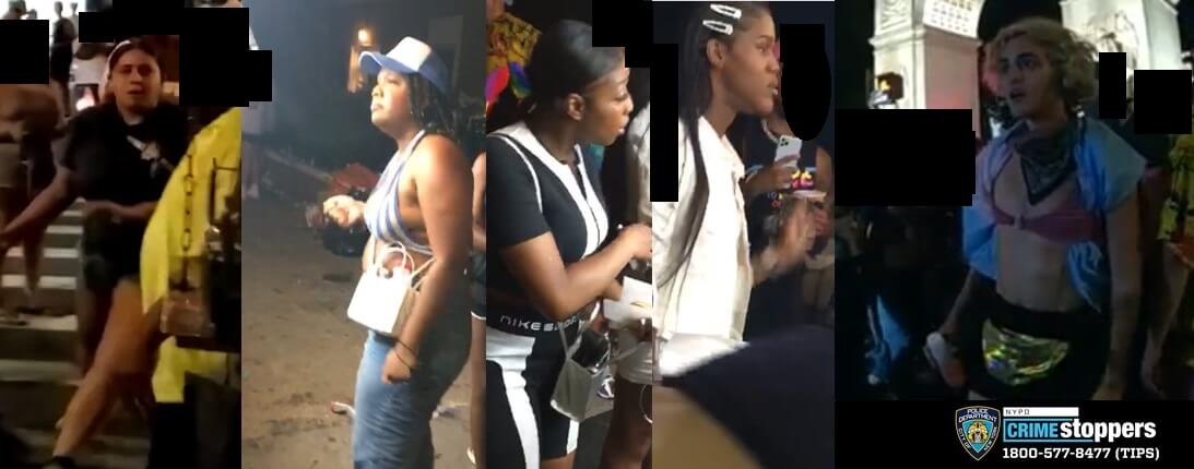 The NYPD released images on Friday night of the individuals sought for the June 27 attack, which occurred at about 10:22 p.m. near the corner of 5th Avenue and Washington Square North in Greenwich Village.