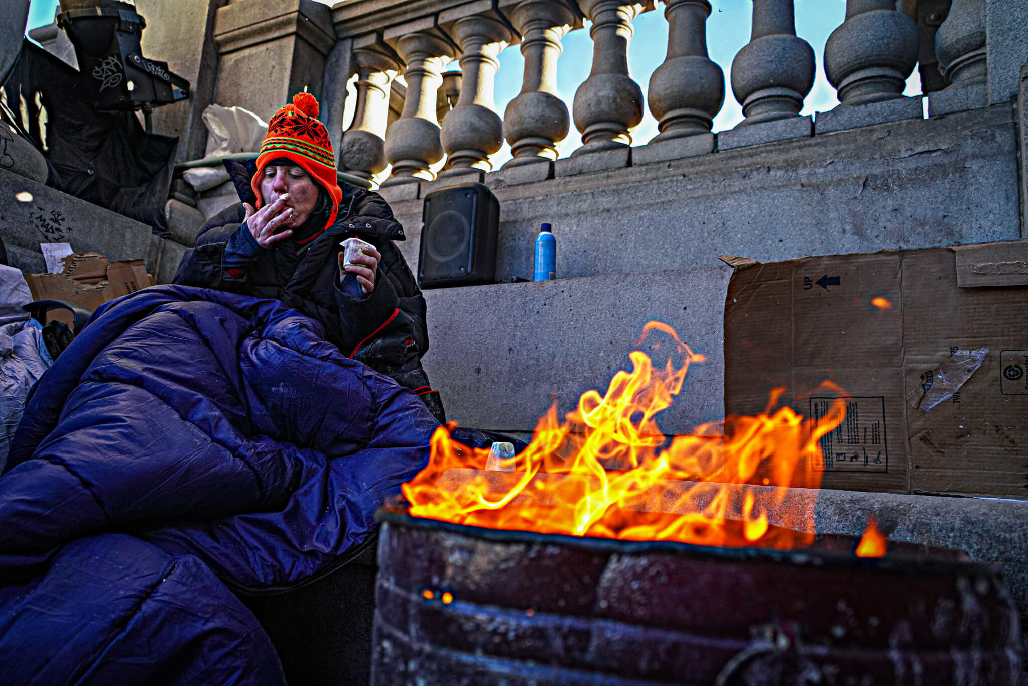 “The fire department came yesterday but they were cool about it. Somebody had complained about the fire, but they were cool about it because they know we are cold,” one unhoused man said, who did not want to be identified.