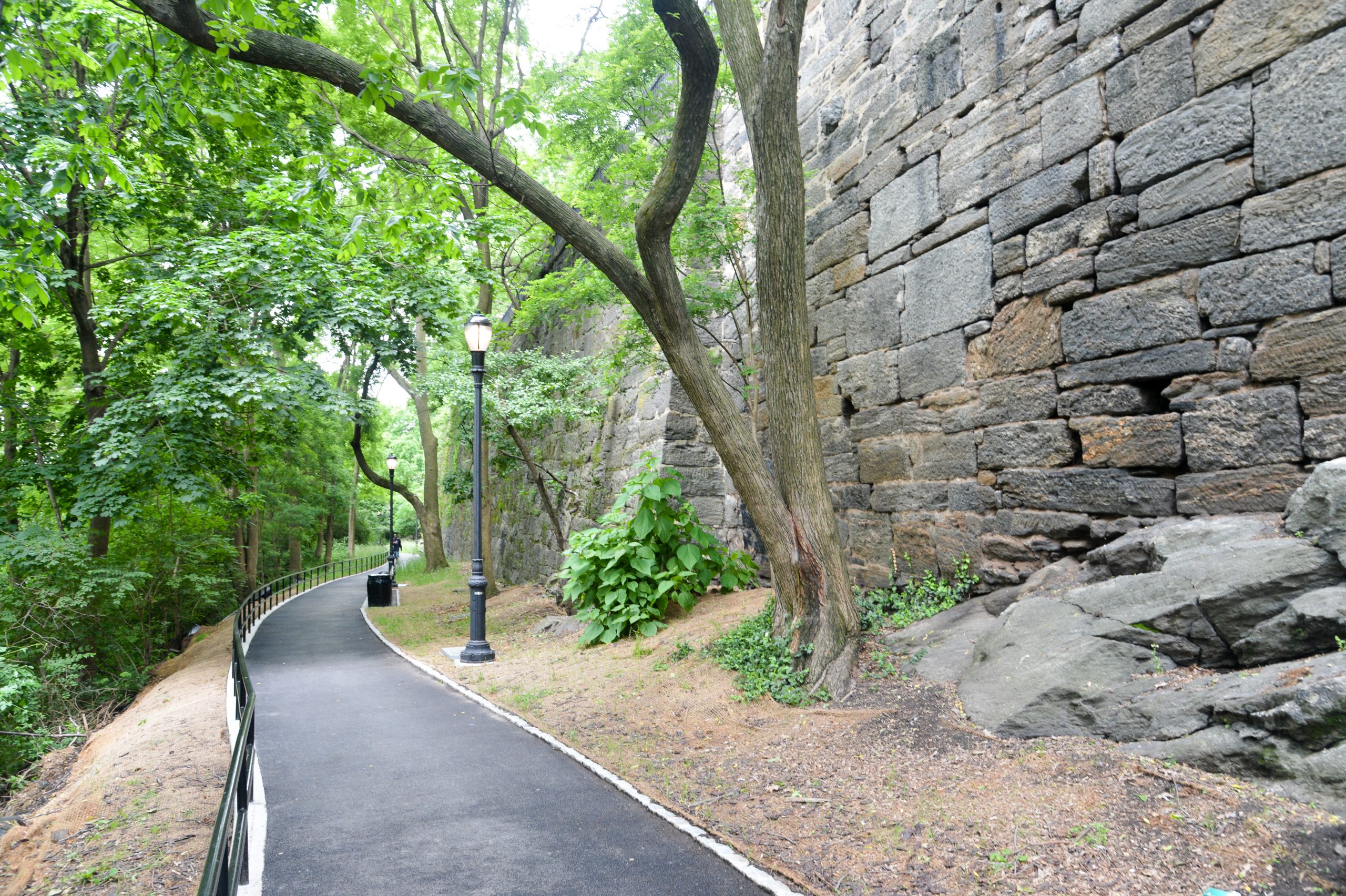 The 12.77-acre park bounded by Bradhurst Avenue, 155th Street, Edgecombe Avenue, and 145th Street in Harlem was nominated for revitalization by the community and underwent major changes that included the refurbishing of entrances, paths, seating, lighting, and stairways to improve access to the park.