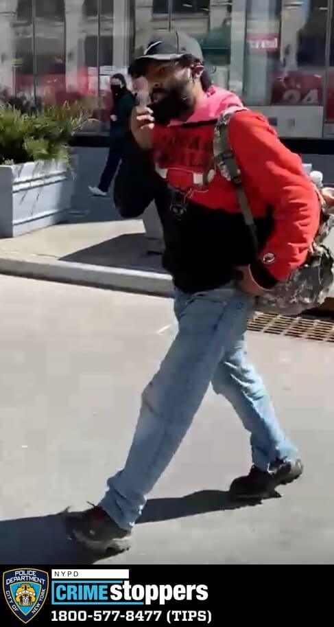Video footage that the NYPD released on Monday morning shows the suspect quickly walking toward the entrance to the Astor Place subway station on the 6 line, at the corner of Astor Place and East 8th Street. Cops said he entered the station and fled in an unknown direction.