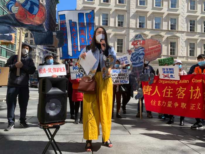 Assemblymember Grace Lee solemnly recalled the way in which Chinatown was besieged by discriminatory attacks in 2020, even stating that she herself was a victim of xenophobia, along with her child.