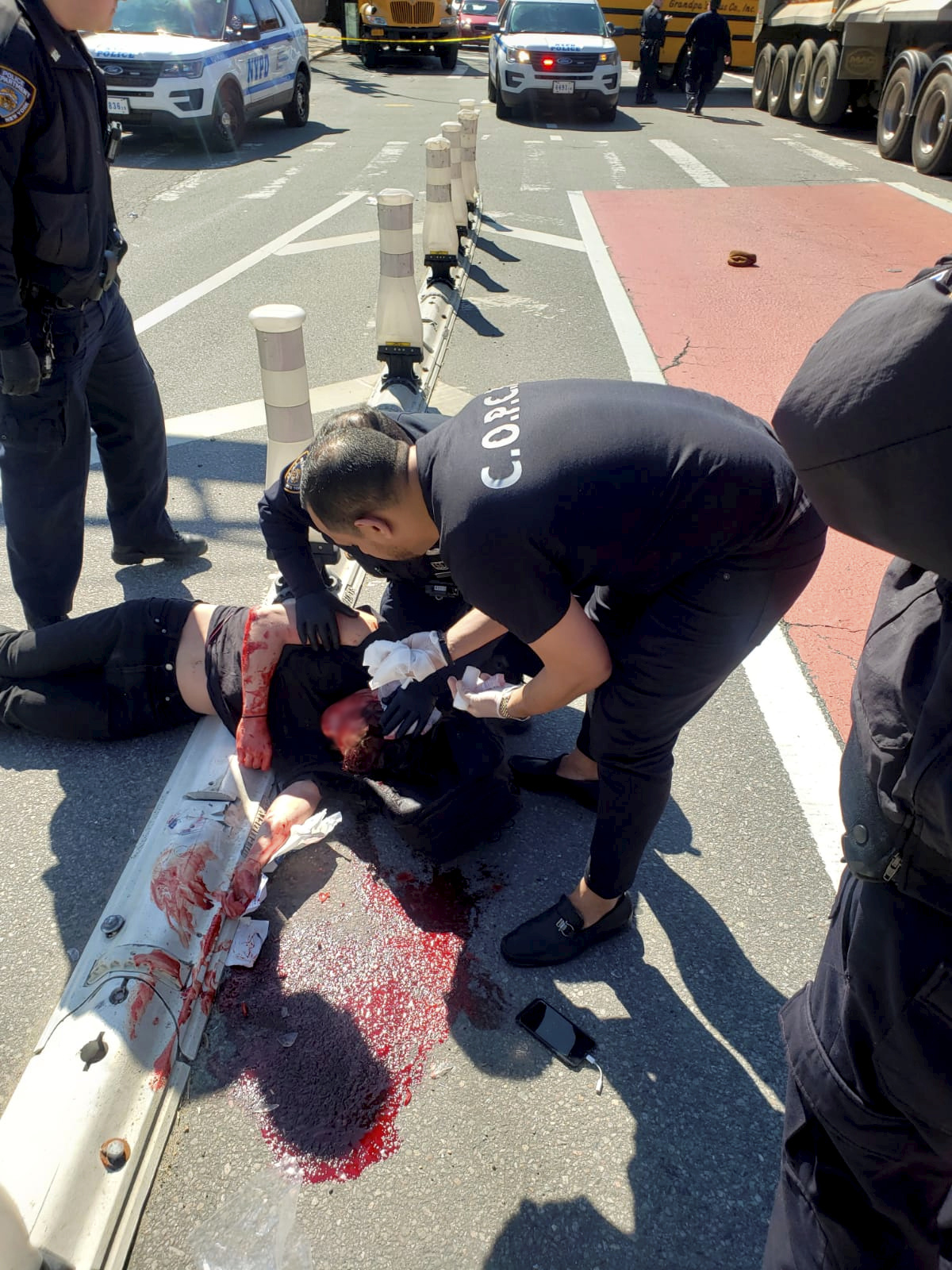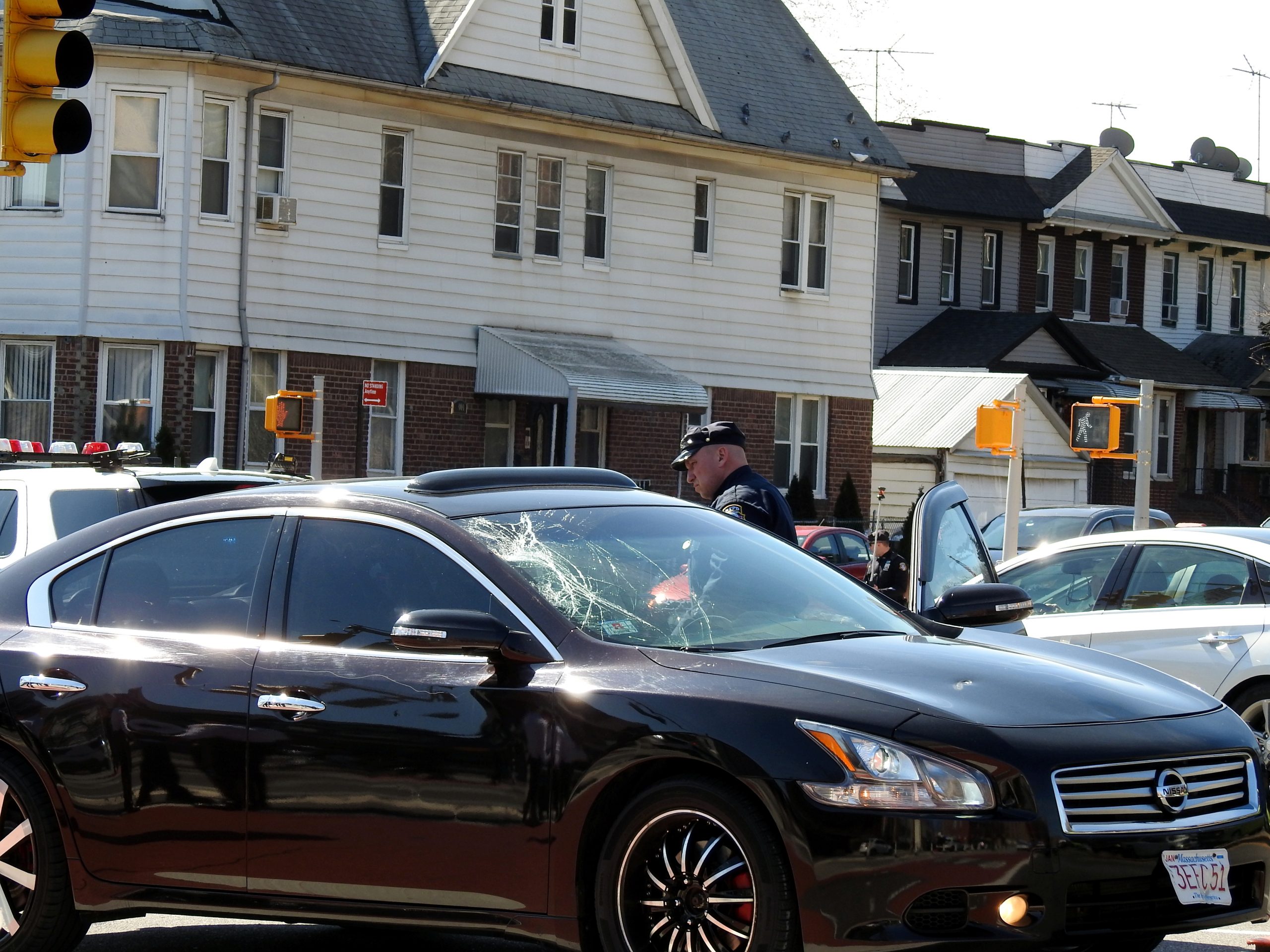 The 17-year-old cyclist suffered trauma to the head and is in serious condition after being hit by the 22-year-old driver around 11:30 a.m., according to police. The cyclist was transported to Long Island Jewish Hospital.