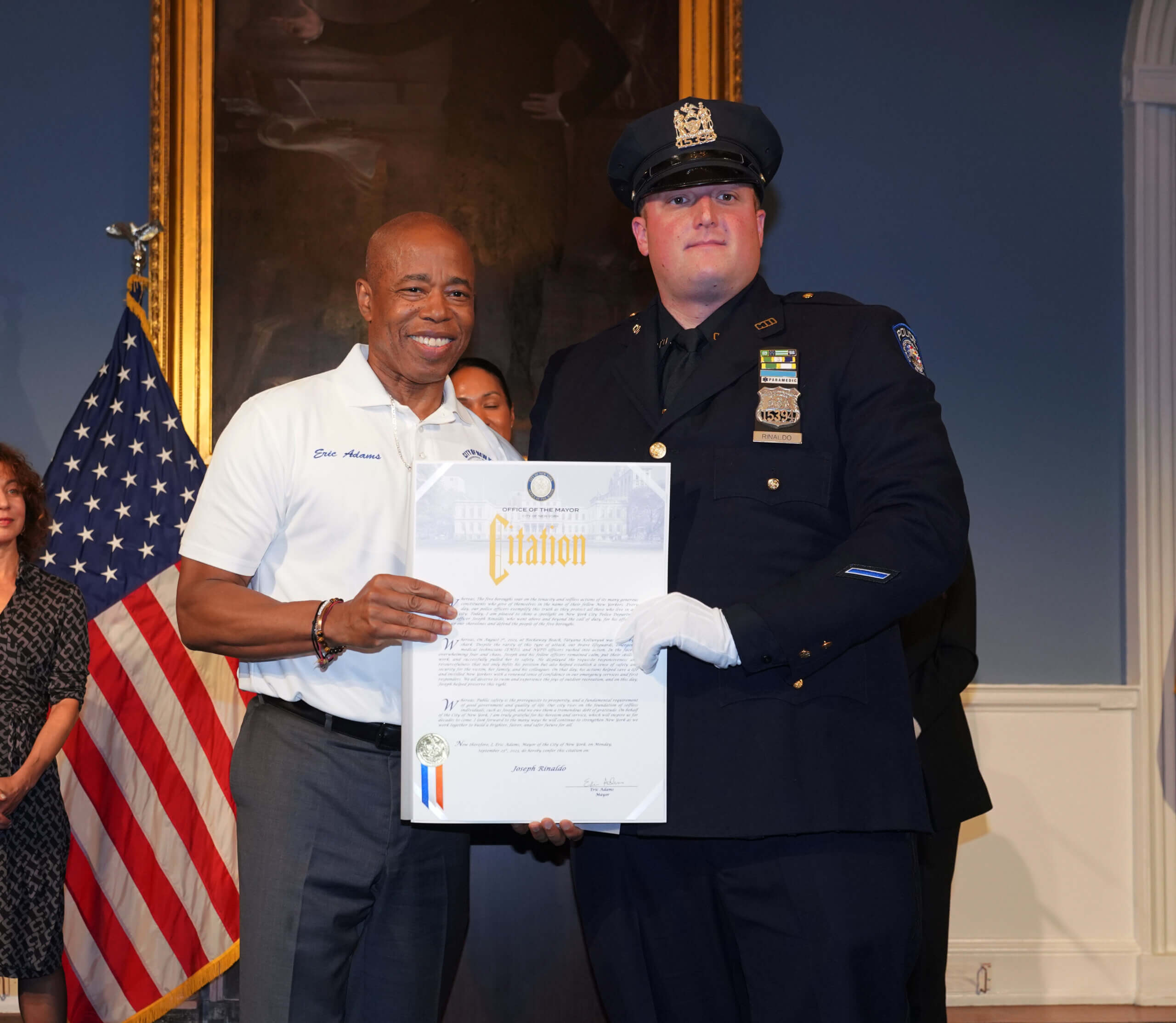 “You were able to save someone’s life. She is with her family because of what you did for her,” Mayor Adams said during a City Hall ceremony in which he honored their heroic actions. “We cannot overemphasize how much that meant that we have a New Yorker that is with a family right now.”