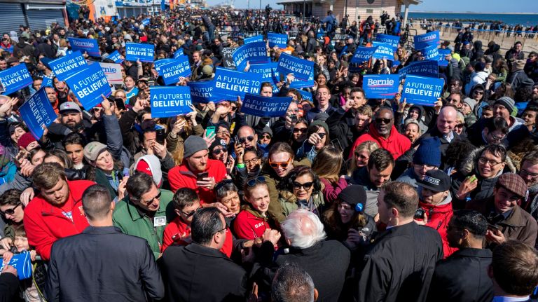 Many of those stops involved eating some of New York’s famous food, including a Nathan’s hot dog in Coney Island and pizza at Gino’s Pizzeria in Queens. Others were rallies held throughout the boroughs.