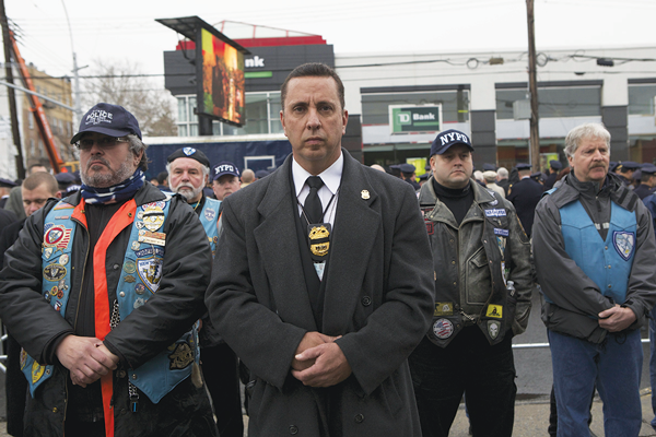 As they had done a week before for Police Officer Rafael Ramos, thousands of police filled the street outside the funeral of his patrol partner, Wenjian Liu, in Bensonhurst, Brooklyn, on Sunday. Estimates put the number at 10,000, less than half that of a week earlier. Liu, 32, and Ramos, 40, were ambushed on Dec. 20 in Bedford-Stuyvesant by a deranged gunman who had tweeted about getting revenge for Eric Garner. Despite a plea by Police Commissioner Bill Bratton not to do so, many cops, including those in top photo — from the city and farther afield, as well as retired officers and others who came in their biker colors — once again turned their backs when Mayor de Blasio was shown speaking on giant screens outside the funeral home. An only child, Liu decided to join the Police Department after the 9/11 attacks. He had married only three months ago. The police flag that draped his coffin was folded into a triangle and given to his young widow, Pei Xia Chen.