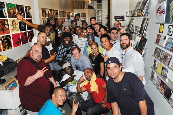Collectors, dealers, DJs and friends spent the day saying goodbye to the tiny shop, where Boxx (center, in blue shirt, in photo at right) didn’t just mind the store. He said that, during his years as a record dealer and DJ, he felt his business was about more than just sales.