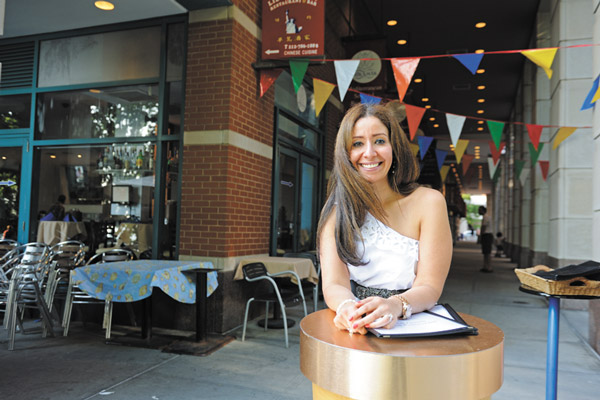 Naglaa Mohamed, a Battery Park City mom, outside Miramar, a new neighborhood restaurant that she and her family own.