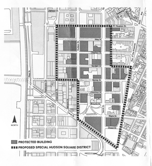 Also, the board said the rezoning should be denied unless the abutting, proposed South Village Historic District is designated as a landmarked district — since allowing residential use in Hudson Square would put development pressure on the South Village.