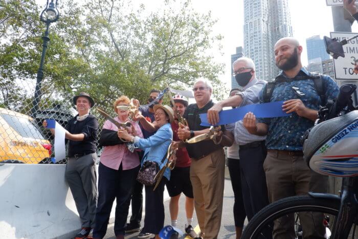 “Anybody who has ever questioned the role of cycling in this city, is it a big deal, is it just a pandemic thing,” said Department of Transportation Commissioner Hank Gutman, “the answer is pretty clear today: cycling is a big deal, it is here, and today one lane of the Brooklyn Bridge is being dedicated to cycling forever.”