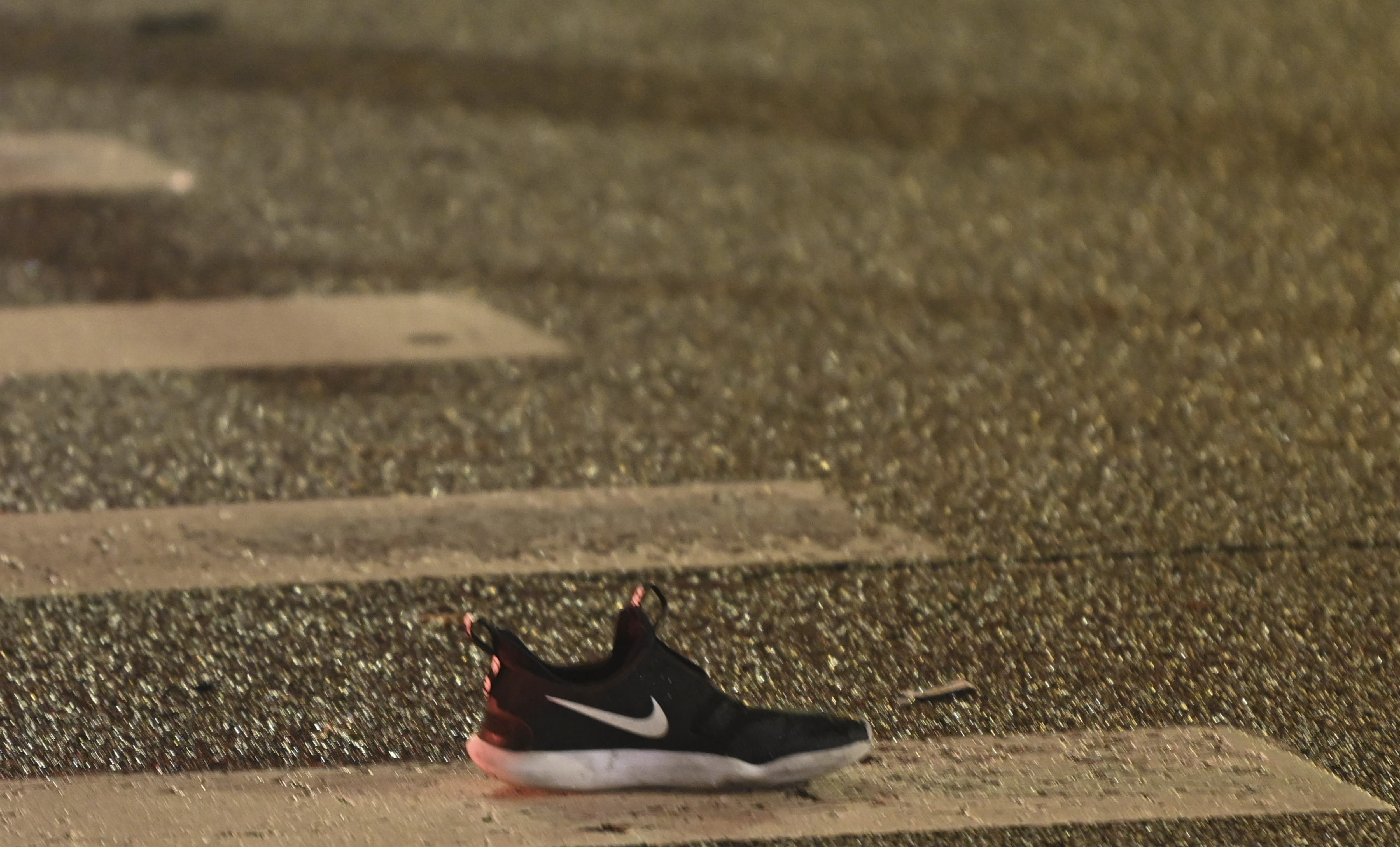Pieces of the child’s destroyed scooter could be seen scattered around the crash site as members of the NYPD Highway Collision Investigation Squad probed the crash. A sneaker was also spotted in the middle of the rain-slick roadway.