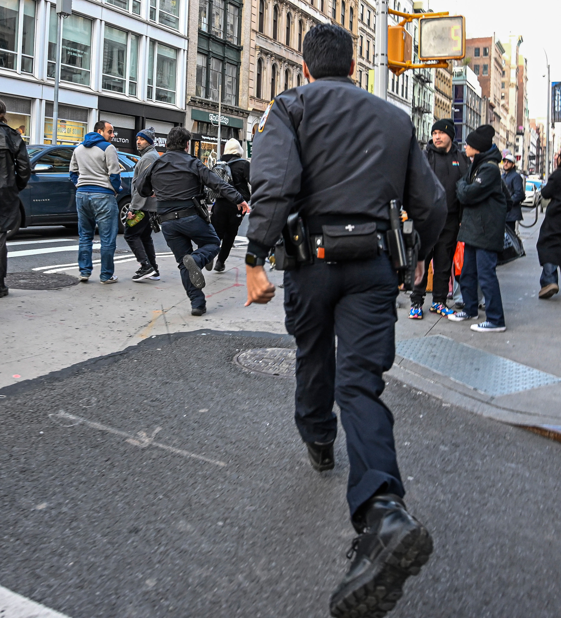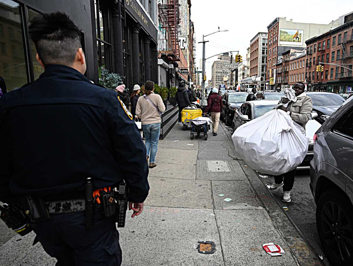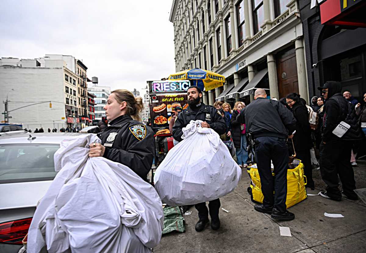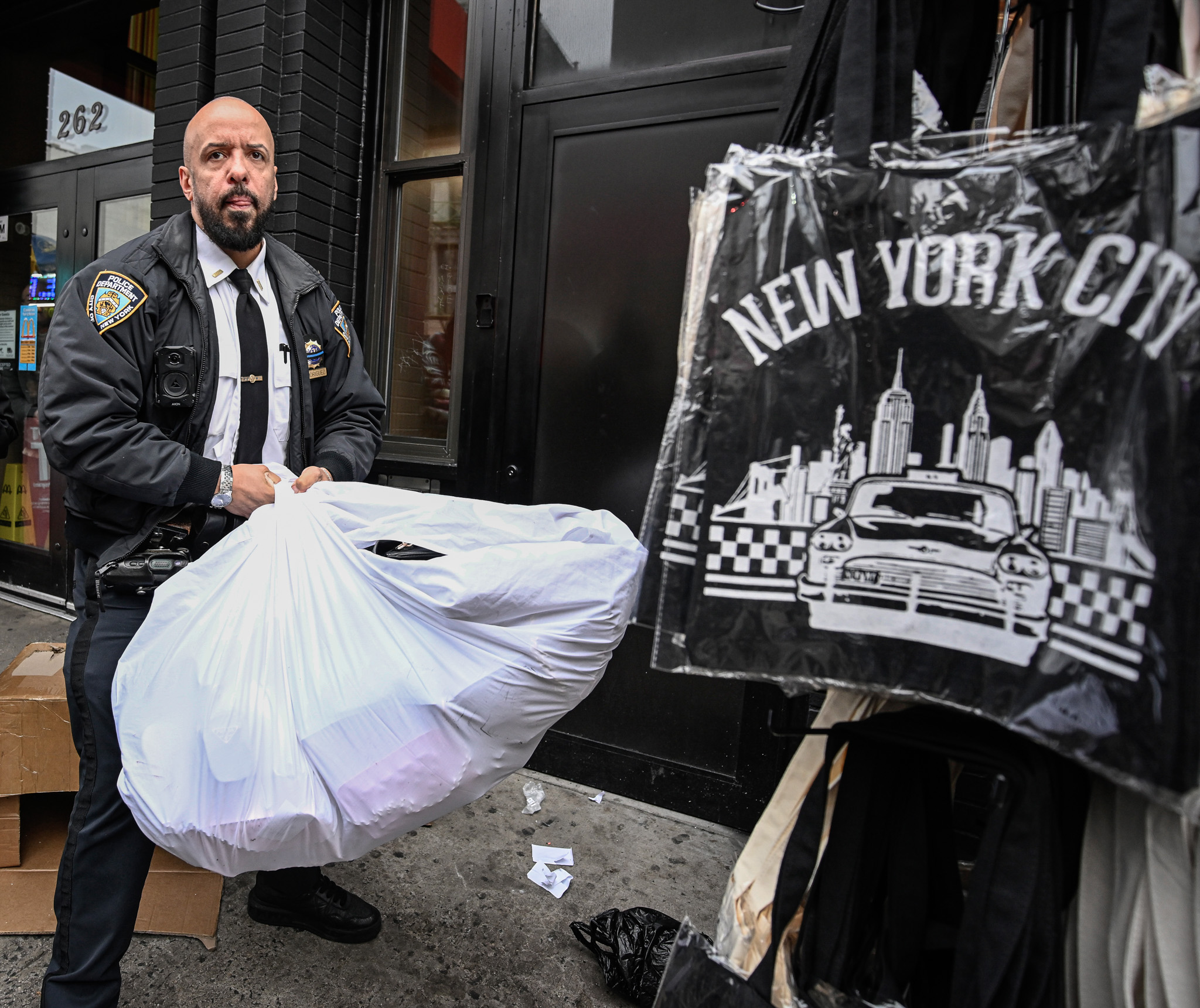 The NYPD stated that its operation took place just before 11:10 a.m. on November 22, near the corner of Canal Street and Broadway. Cops had confiscated more than 25 bags of counterfeit trademark items being illegally peddled by vendors in the area.