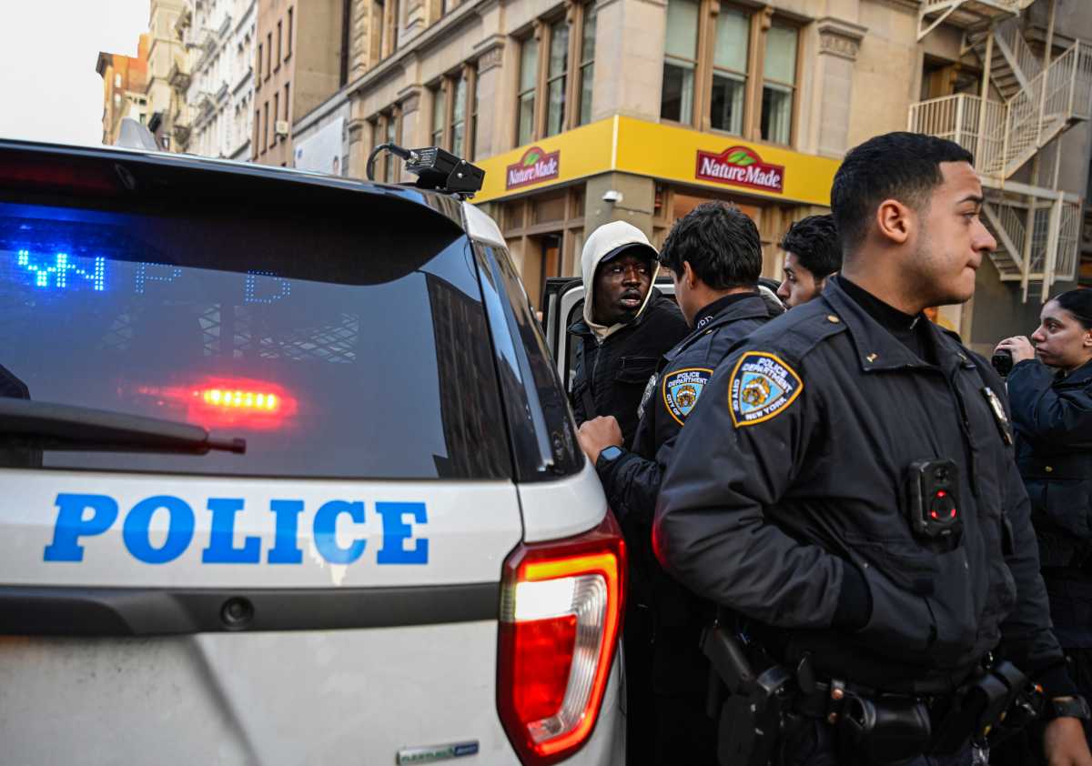 As the day wore on, vendors stood in defiance, continuing to hawk their wares despite the NYPD’s presence nearby. This caused several clashes, with some cops pushing their way and gathering the bundles of goods, stuffing them in the back of their police cruiser, leaving a mountain in the rear seat.