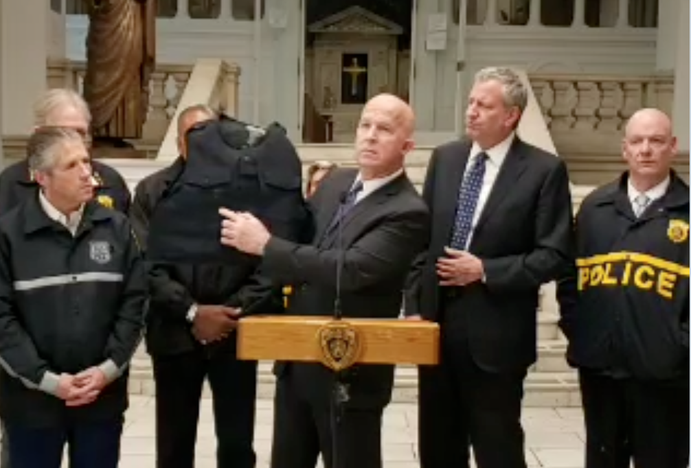 “Thank God our officer is safe,” de Blasio said at the press conference. “I visited with him in his room at the hospital, he’s in good spirits. … The good news is, he’s coming through okay. He’s shaken up, but he will be okay.”