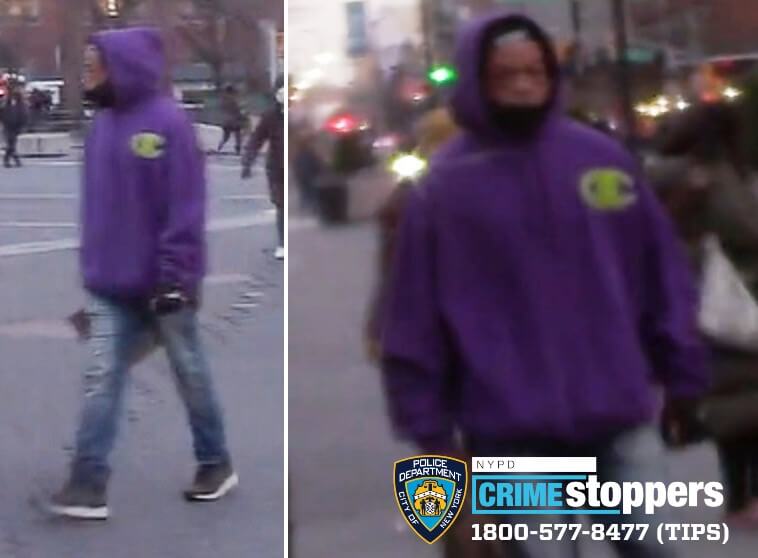 Cops described the perpetrator as a Black man between the ages of 25 and 30 years old. He was last seen wearing a purple hooded sweater, blue jeans and black sneakers.