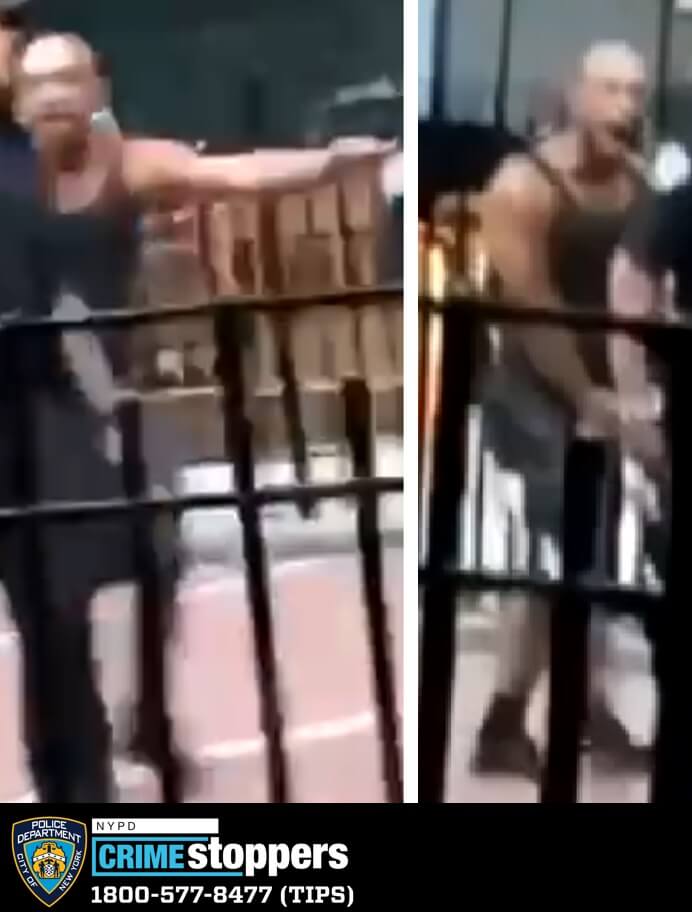 Cops described the perpetrator as a man with a medium complexion and build, standing 5 feet, 7 inches tall and weighing 160 pounds. He has a bald head and a scar on the right side of his face, and was last seen wearing a black tanktop, black shorts and black sneakers.