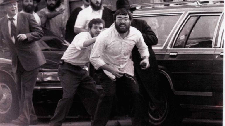 New York Daily News article, published on Aug. 21, 1991, describes a scene of hundreds of people in the streets. “There was what Police Commissioner Lee Brown described as a standoff between 200 Hasidim and 200 blacks at the scene of the accident,” the article reported. “Between 200 and 225 cops kept the groups apart.”” data-id=”112184886″ data-link=”https://www.amny.com/wp-content/uploads/2019/10/14678_image.jpg” class=”wp-image-1.12184886″/>Photo Credit: Newsday / Mitsu Yasukawa -