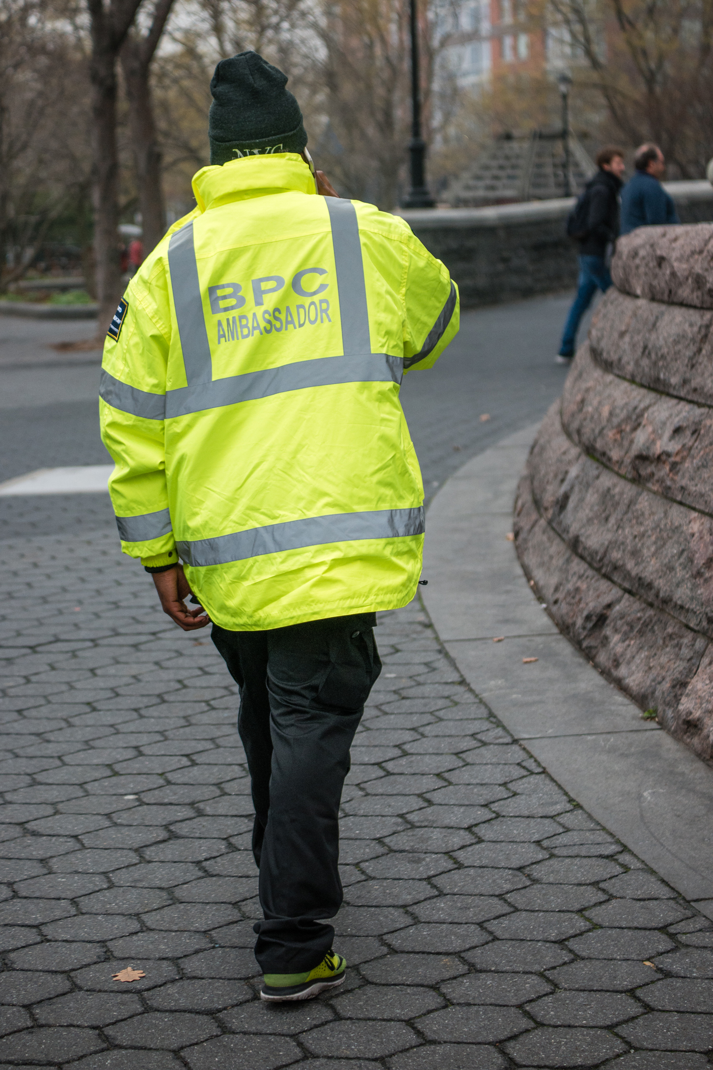 The Battery Park City Authority hired private security contractor AlliedBarton to provide yellow-clad “ambassadors” to patrol the neighborhood, replacing most of the city’s Park Enforcement Patrol.
