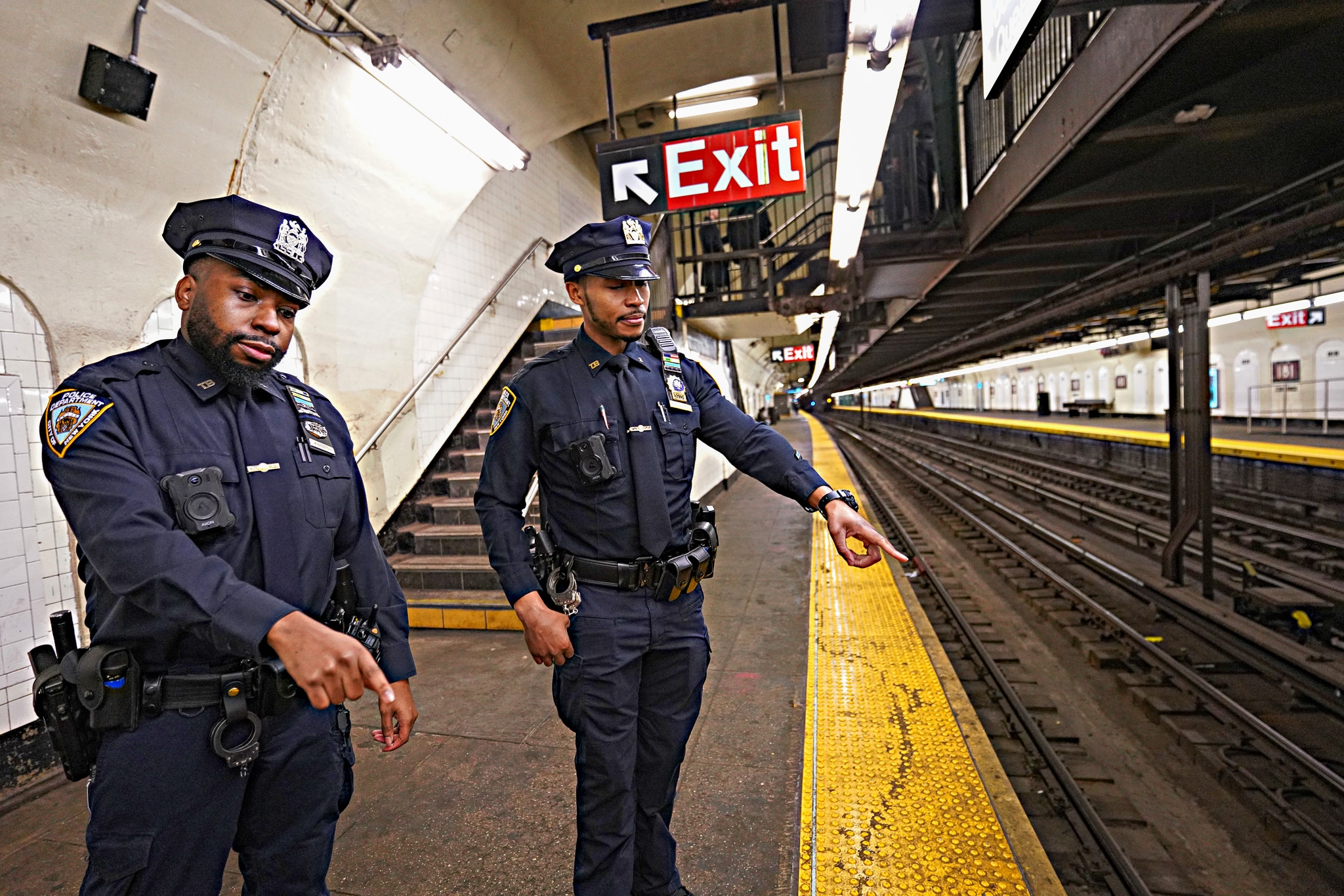 Officers Marvel Kingston and Travis Burks from Transit District 3 were patrolling the A line at the 181st Street Station at around 7:21 a.m. on Feb. 18 when an apparently intoxicated man stumbled and fell onto the downtown-bound tracks.