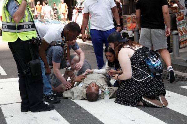 Ehab, a food vendor at the corner of W. 44th St. and Broadway who withheld his last name, said he saw the Honda speeding on Broadway and ramming into several people. Panicked passersby began running away from the center of Times Square, Ehab said, and he was eventually forced to move his food cart down the block by police.