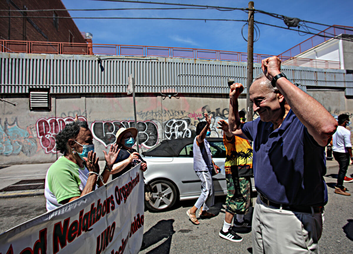“We are taking back our streets. We are saying gun violence is too much. We are saying communities can come together and stop it in a peaceful, thoughtful, careful, and non-bigoted way, non-discriminatory way and that is what we are here to do,” Schumer said. He added that his stance against gun violence and push for more stringent laws as garnered him “Public Enemy Number One” by the NRA — a title he says he is proud to have.