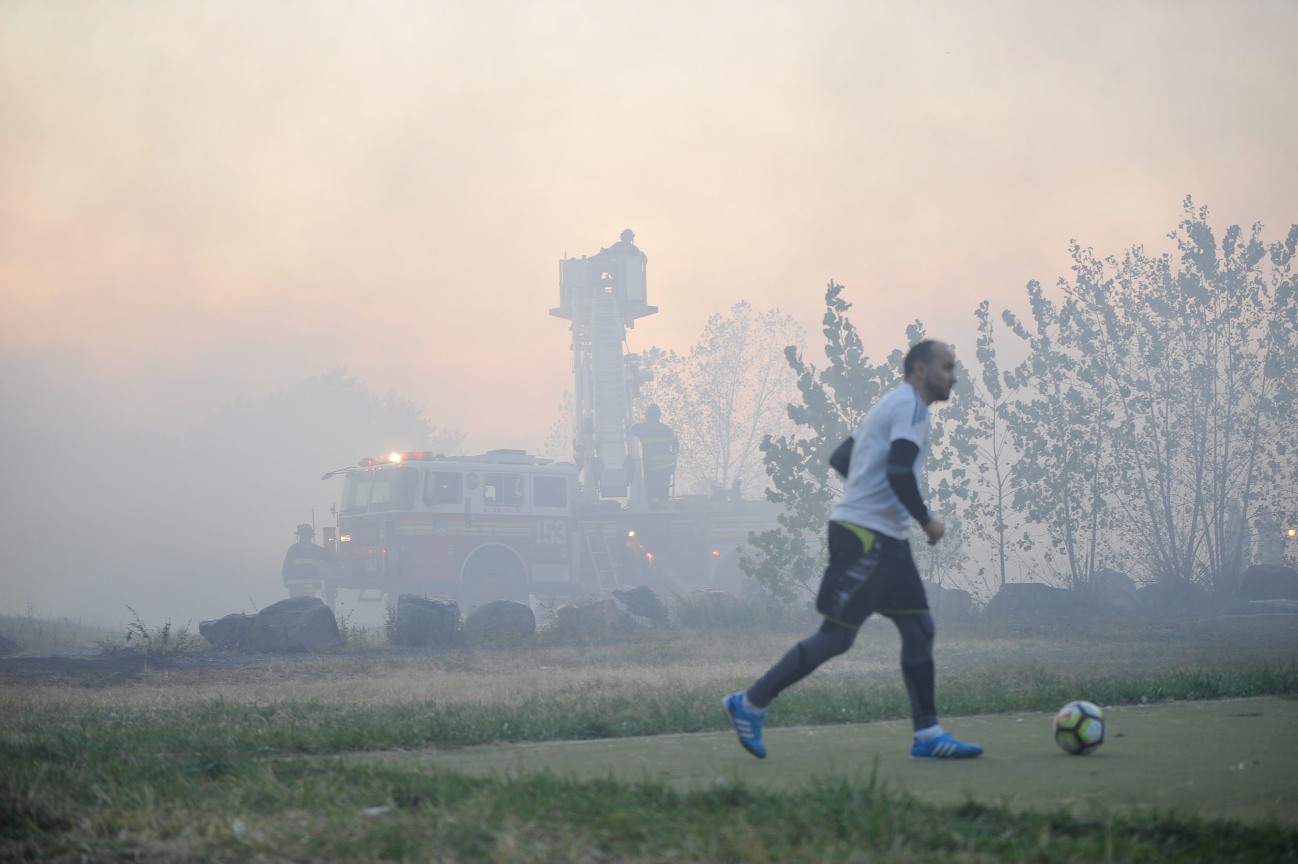 Firefighters were called at about 5:30 p.m. on Sept. 22 to Calvert Vaux Park along Shore Parkway between Bay Parkway and Cropsey Avenue in Gravesend, where flames could be seen for miles along with a plume of smoke. The area was described by one firefighter as “larger than a football field.”