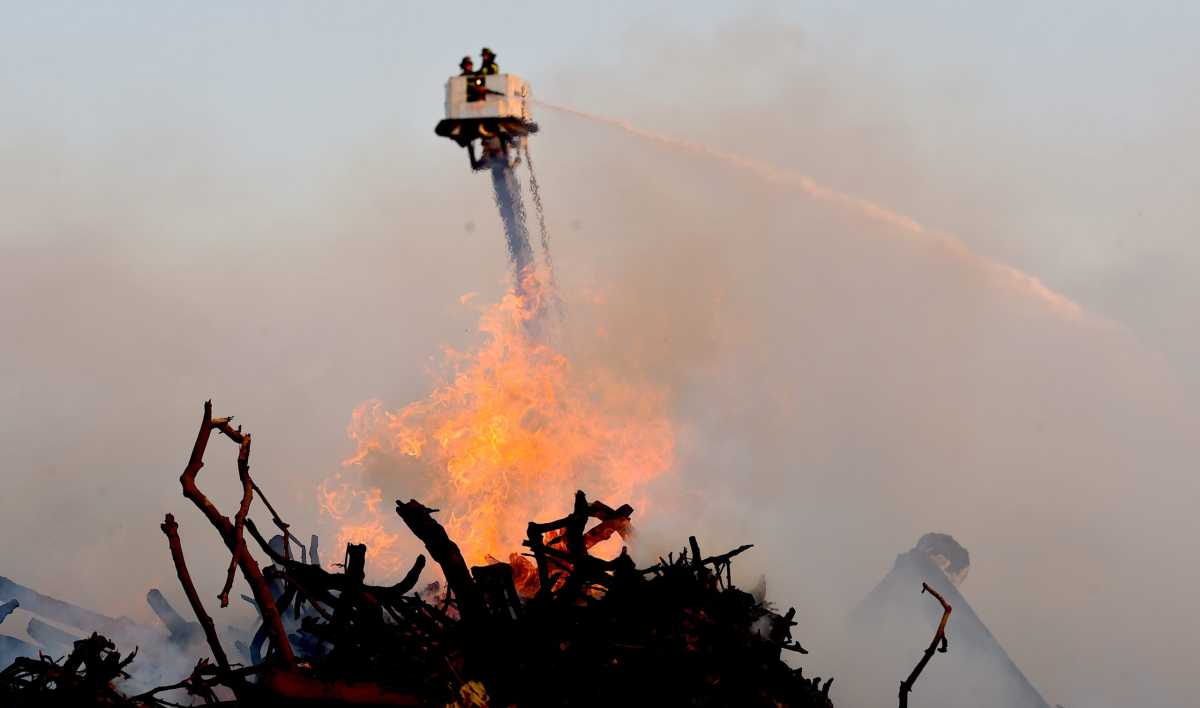 More than 150 firefighters surrounded the fire, with the help of tower ladders spraying from above. It took firefighters five hours to bring the blaze under control, but firefighters stayed throughout the night to make sure sparks didn’t rekindle. The nearby sports facility was not damaged by the fire.