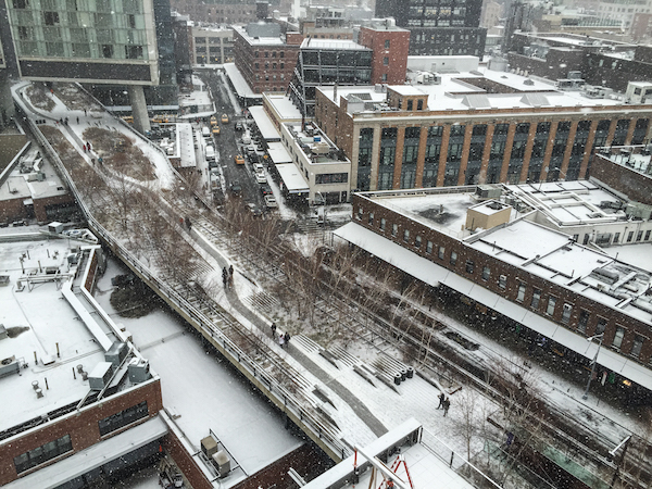 Chelsea’s elevated park was a short-lived winter wonderland on Monday afternoon, allowing Tequila Minsky to capture this image from her vantage point on the eight floor of the Whitney Museum of American Art. It was a sweet spot in more ways than one, with the photo taken just as the Whitney was about to close its outdoor plazas because of the snow, and before the rain would wash away Minksy’s scenic vista. See page 8 for more photos from this brief window of opportunity.