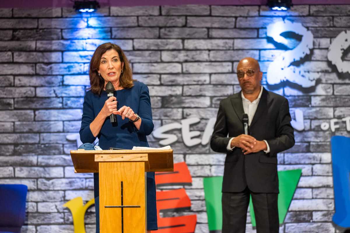 At the True Bethel Baptist Church Sunday, Hochul joined several New York politicians in condemning the attack.