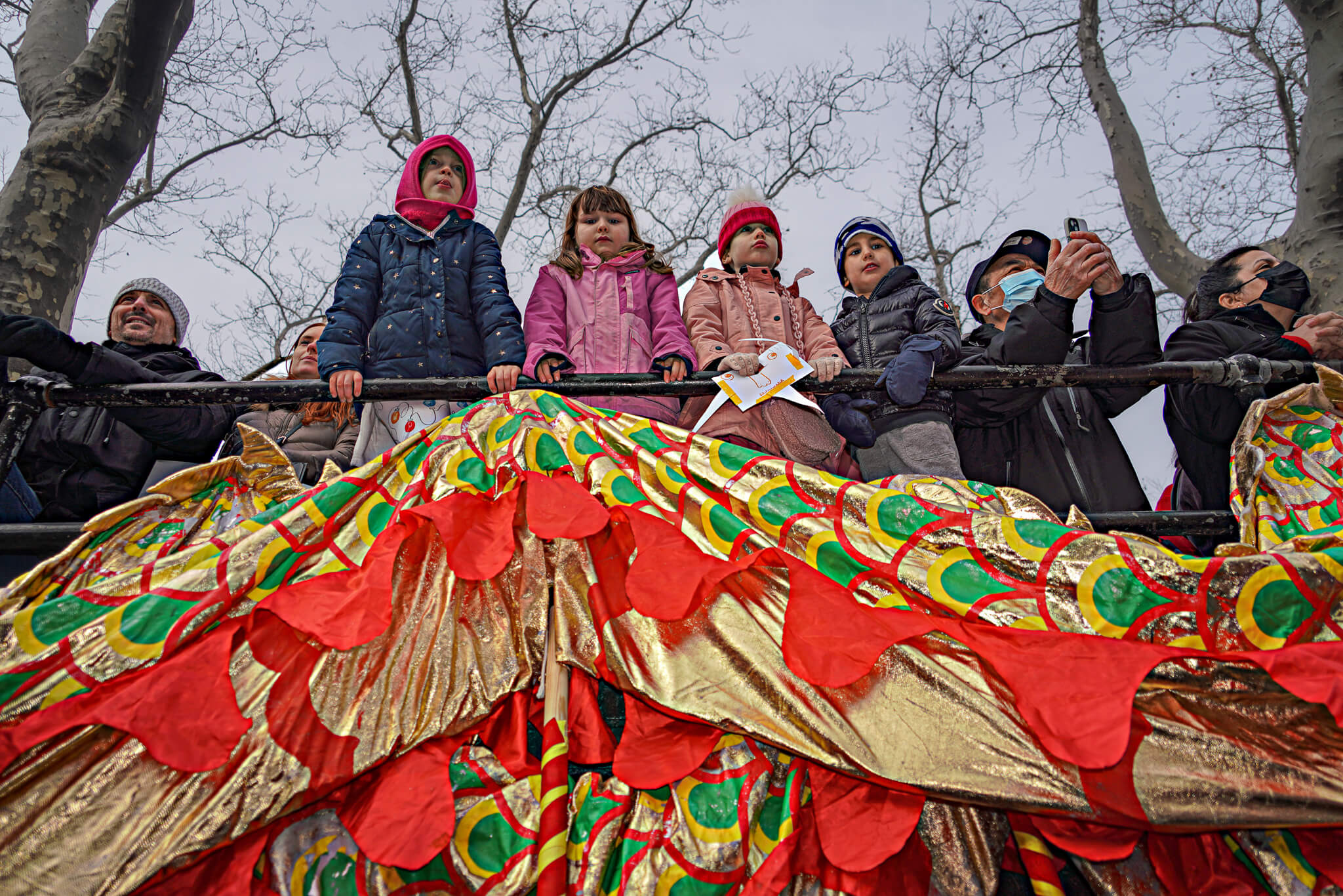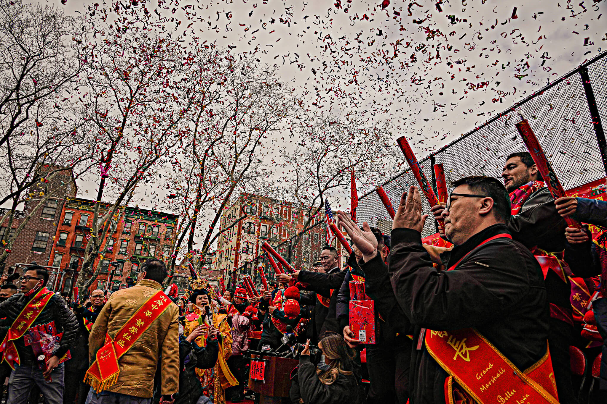 New Yorkers of all ages waved flags and cried “Happy New Year!” as musicians played songs to mark the occasion. Lion dancers also put on a jaw-dropping show that saw a performer scale a gigantic, 50-foot pole above the park while confetti blasted into the air.