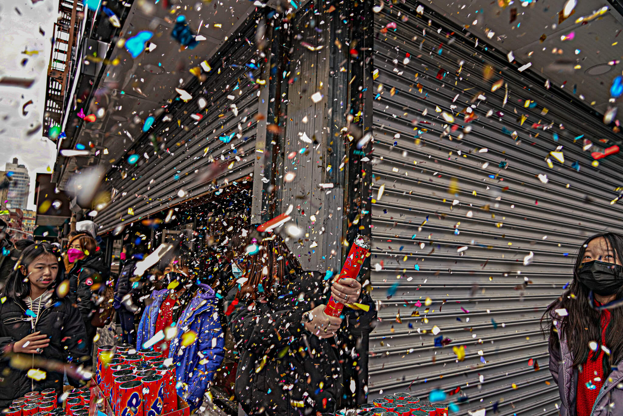 The celebration, hosted by the New York Chinese Freemasons Athletic, featured extravagant dragon dances accompanied by the thumping beat of drums and bursts of confetti flying in every direction.