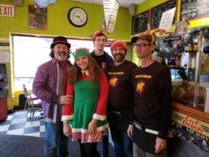 “We didn’t have anything before because we’re an old-school diner, but I’m trying to keep up with the guidelines and make people [feel] safer about coming inside,” said Elizabeth Pristouris. “We have three or four folding tables we can put outside if it’s a nice day, but yesterday the big winds took my canopy!”