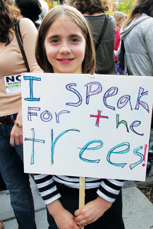 - A young environmentalist in Washington Square Park at Friday’s mass march and rally against the N.Y.U. 2031 mega-development plan.