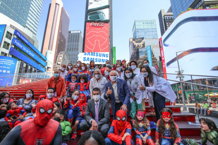 The gigantic screens surrounding Father Duffy Square lit up with depictions of Captain America, Captain Marvel, the Incredible Hulk, Spider-man, Black Widow, and villain Thanos with the words: We are Resilient. The initiative was kicked off in Times Square where Muñoz announced that SOMOS vaccination sites will provide those being vaccinated with a new Avengers comic book, poster, and soon there will be the release of a film “We are resilient.”