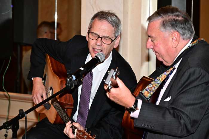 At his retirement party, held on Oct. 22 at Giando on the Water, Knipel showed off his other area of expertise. He picked up a guitar and jammed with Justice Matthew D’Emic, the administrative judge for criminal matters for Brooklyn Supreme Court, and the two jurists led the crowd in a sing-along of Woody Guthrie’s “This Land is Your Land.”