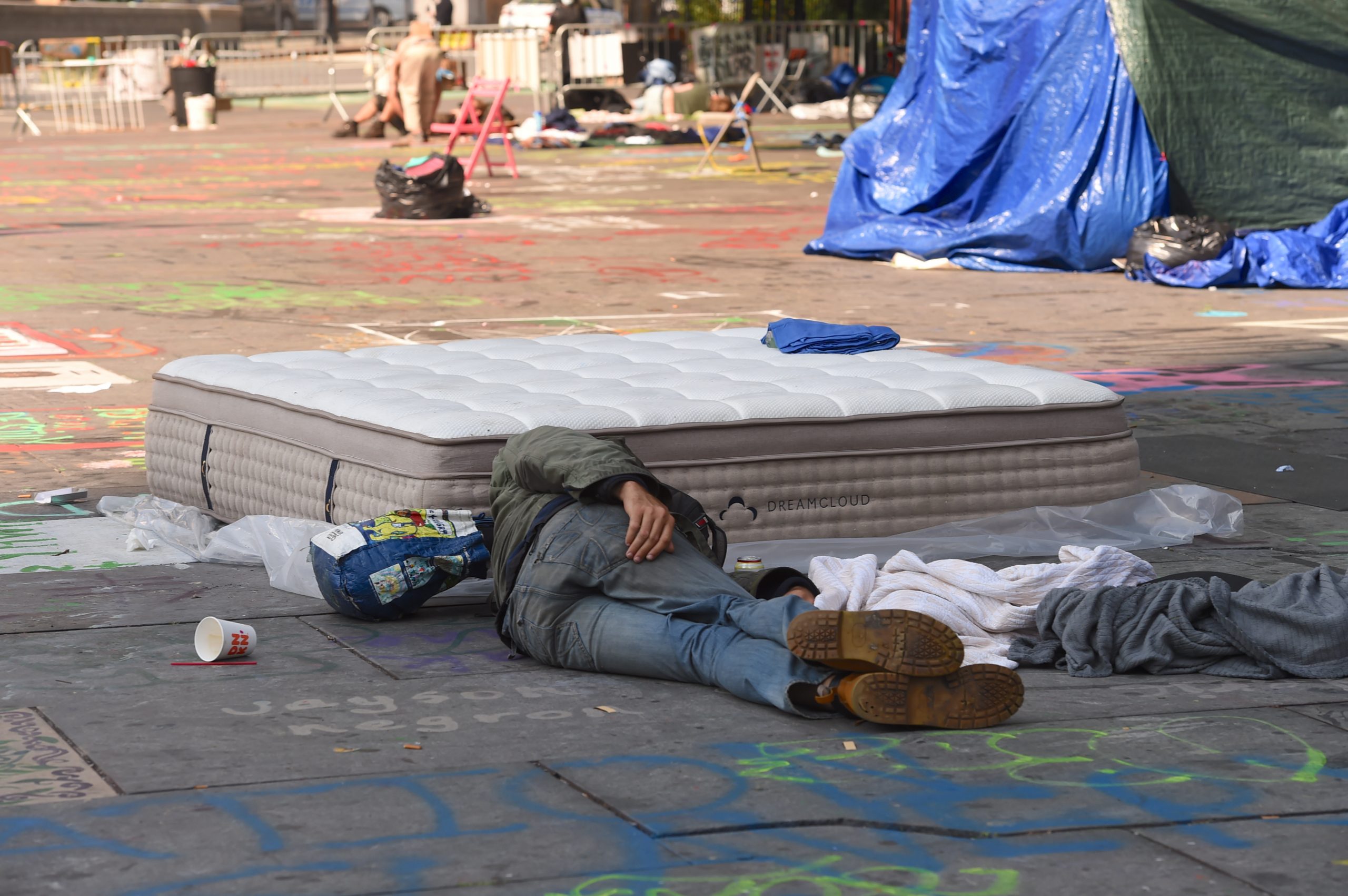 The current occupation of the city hall space has come down to a mere few hundred people, many having created make-shift tents, dragged over old furniture and mattresses and continue to harass members of the media, some of whom have been assaulted and even robbed of equipment. Some of those now living there are using buckets as toilets as bathrooms are several blocks away.