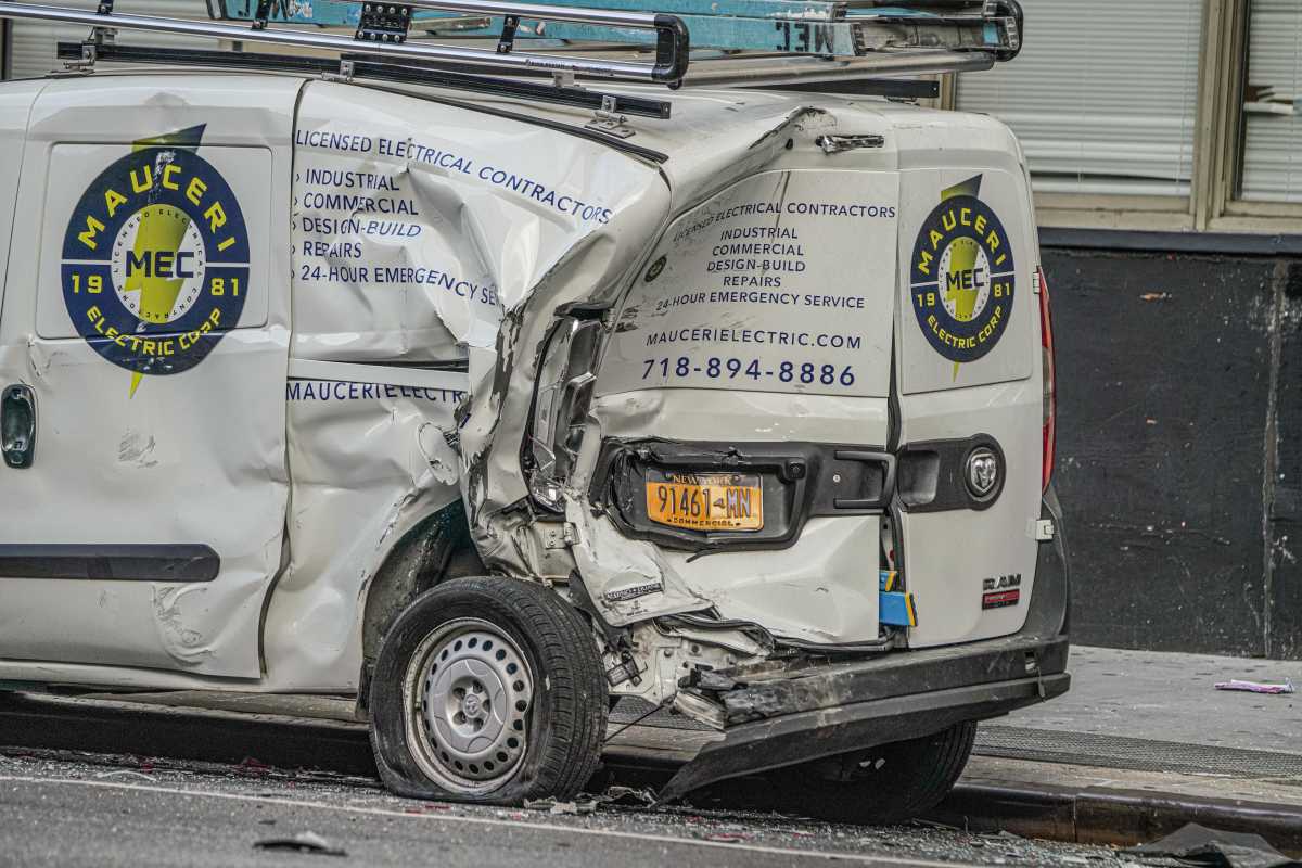 In addition to the pedestrians, the driver of the truck and his passenger were also injured. EMS rushed the 10 injured to Bellevue Hospital and Lennox Hill hospital. all involved are expected to survive. The NYPD Emergency Response Unit pulled the van, belonging to Mauceri Electric of Middle Village, Queens, from the sidewalk.