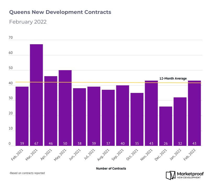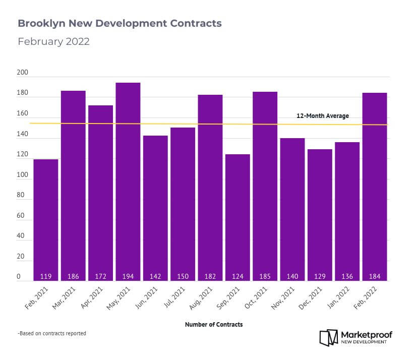 February was another strong month for new development sales across New York City. Developers reported 402 new sponsor contracts, a 26% increase from the month prior and a 35% increase over the same period last year.