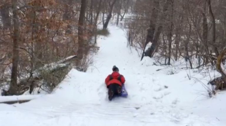 “I’ve never seen just my tracks in the snow before,” he said in between his sledding runs.