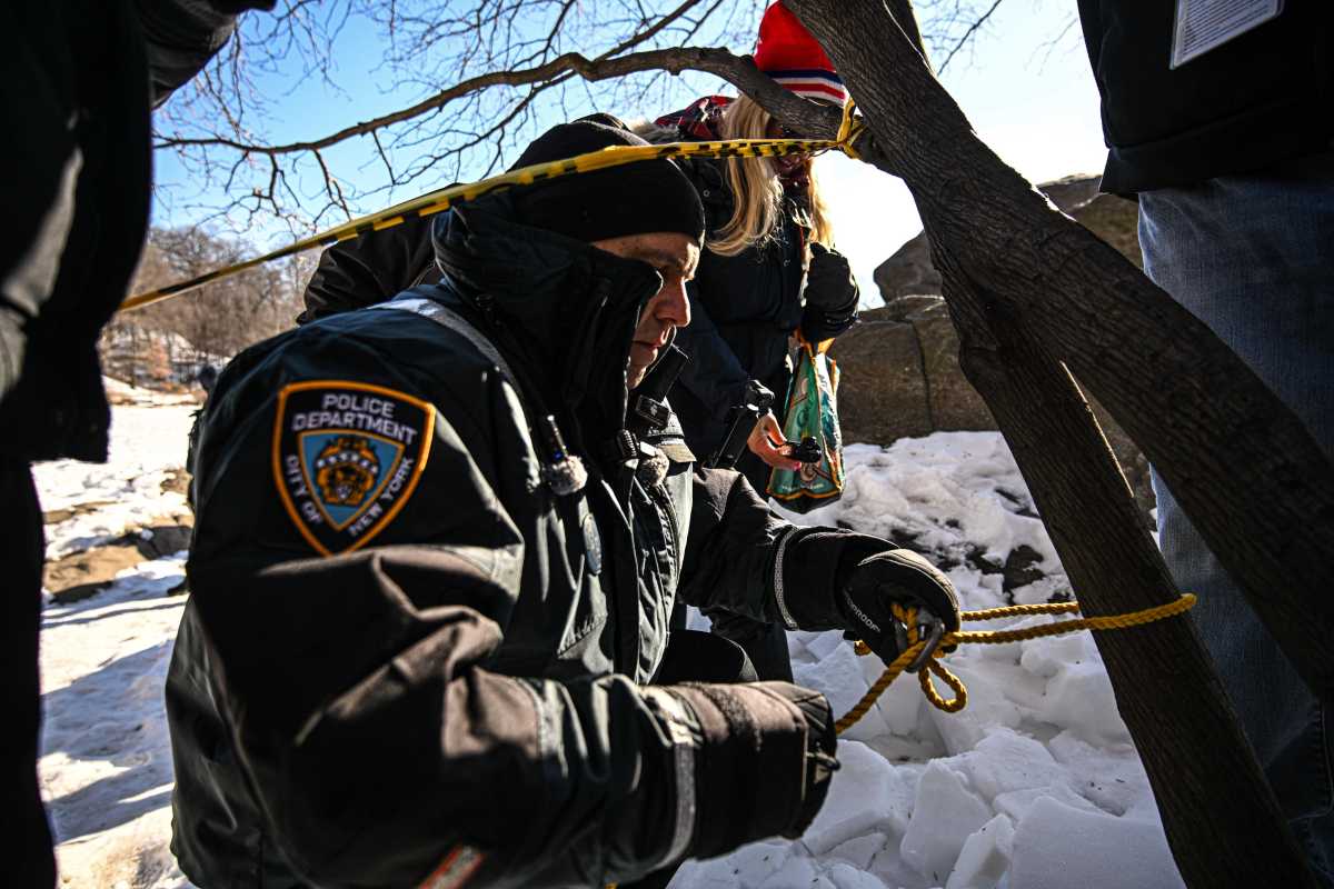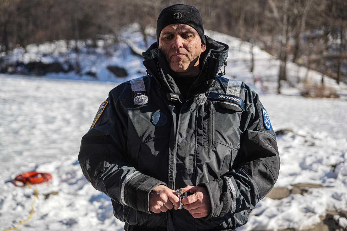 Standing on the edge of a frozen Turtle Pond in the iconic greenspace, Rodriguez looked to inform the cops exactly what they should do if someone fell through the ice and became submerged in the freezing water.
