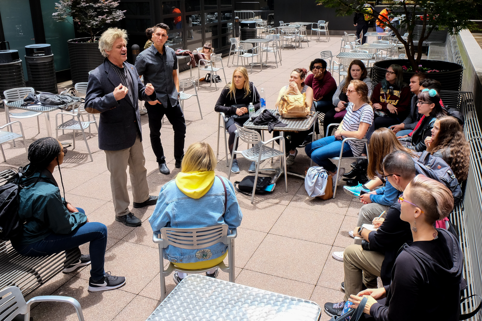 As it turned out, Arizona State University Professor Mathew Sandoval, a former New York University performance studies student who has been following Talen for years, was coordinating a “New York Experience” trip for A.S.U. honors college students. Their first full day in New York, they meet Talen and participated in this writing experience.