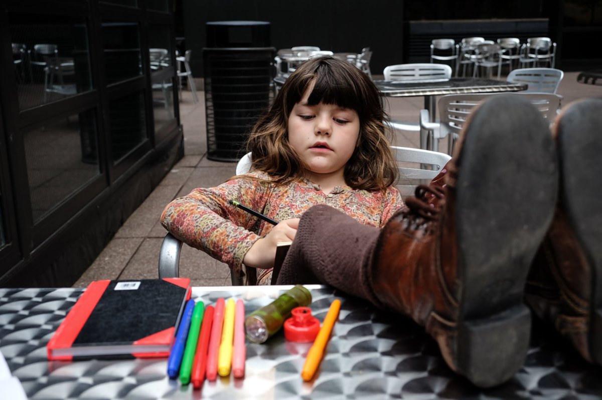 Since May 23, three to four times a week, Talen and Savitri have been writing, longhand, for 45 minutes in this space. Their daughter, Lena, was busy writing, too, on the day this reporter visited.