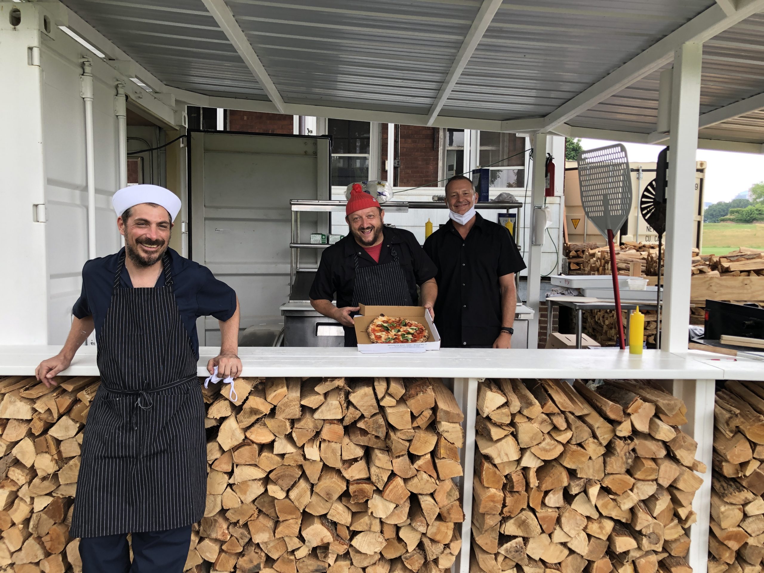 That “yard” is more of a cozy shed that houses a high powered brick oven used by famed Brooklyn-based chef Massimiliano Nanni and his to do what they do best.