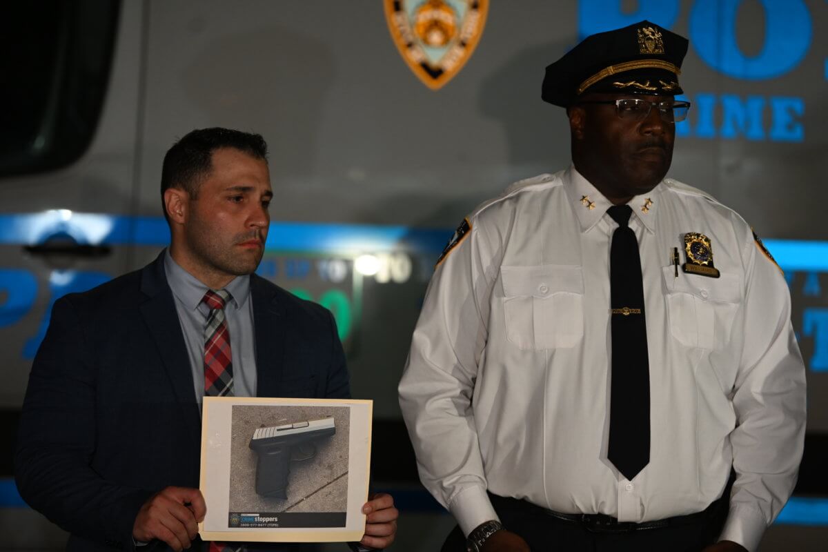 Cops reported that uniformed members of the Public Safety Unit inside an unmarked police vehicle stopped a gold Nissan on Nevins Street and Flatbush Avenue for a traffic violation. The officers reportedly interacted with several occupants in the pulled-over car for almost ten minutes without incident until an officer asked the group to leave the Nissan, which prompted the front passenger to take off running.