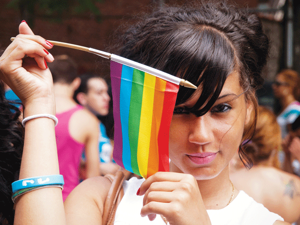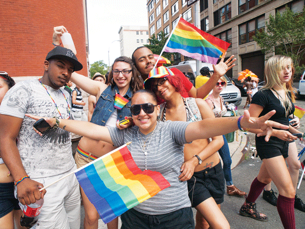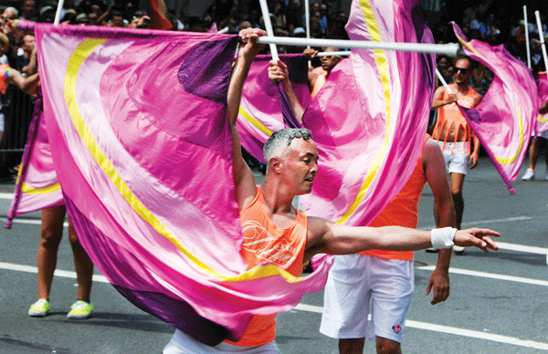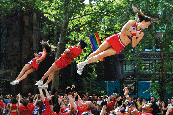 Pride — and high-flying cheerleaders — filled the air at Sunday’s Pride March. Sporting a Boy Scouts of America shirt, George Takei, a.k.a. Mr. Sulu from “Star Trek,” beamed down at warp speed to join the procession, and possibly seek out new forms of life. Guys with buffed bods did pushups while being whipped to do their utmost by a “trainer.” A young woman with a rainbow flag, like others in her generation, is the future face of Pride.